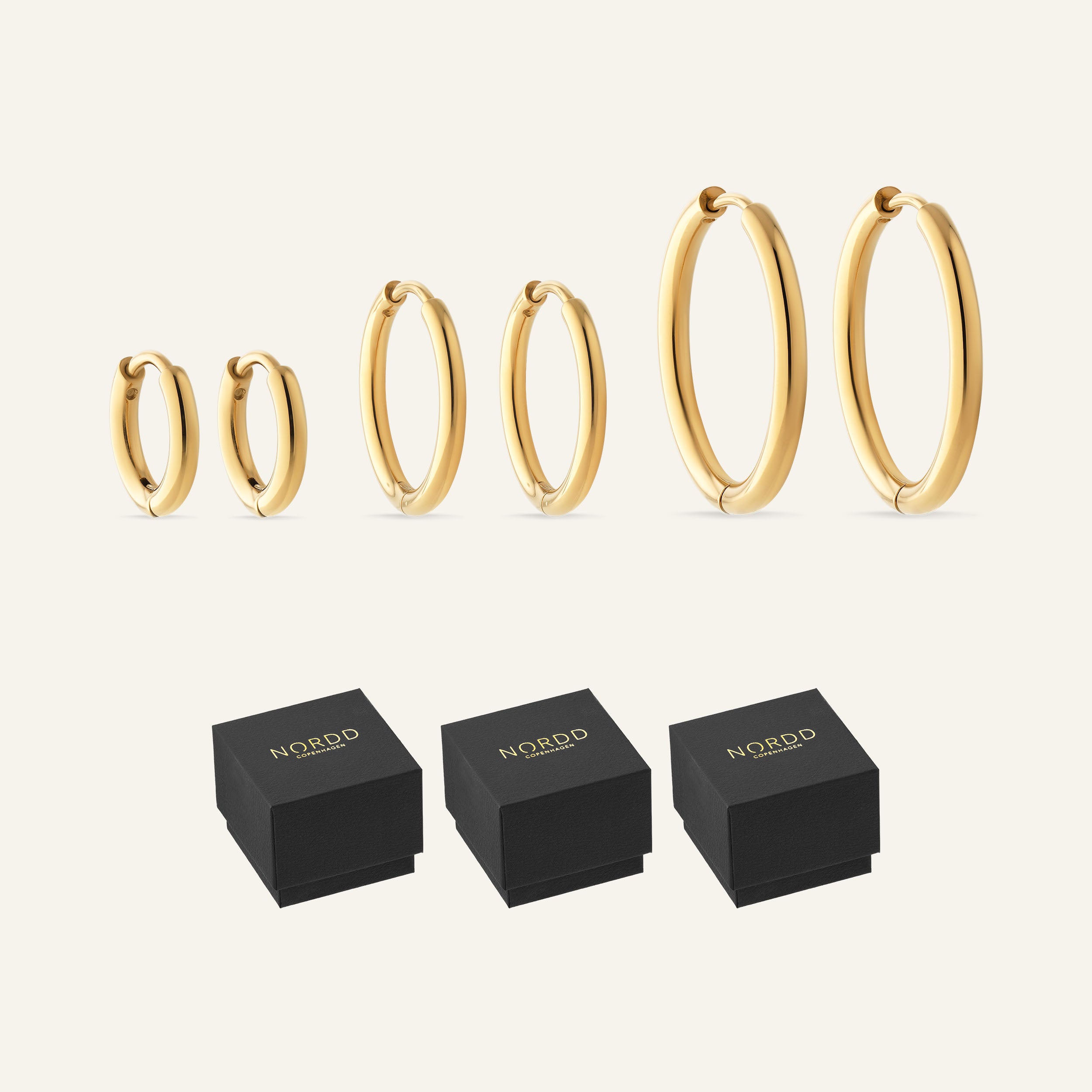 Et tidløst og elegant smykkesæt med tre par klassiske creoler i forskellige størrelser. Sættet indeholder Creoler 12 mm, Creoler 18 mm og Creoler 24 mm, perfekte til både hverdag og fest.