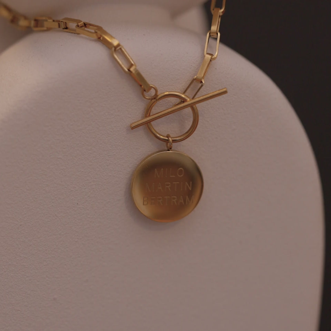 Halskæden indgraveres på fronten af vedhænget.